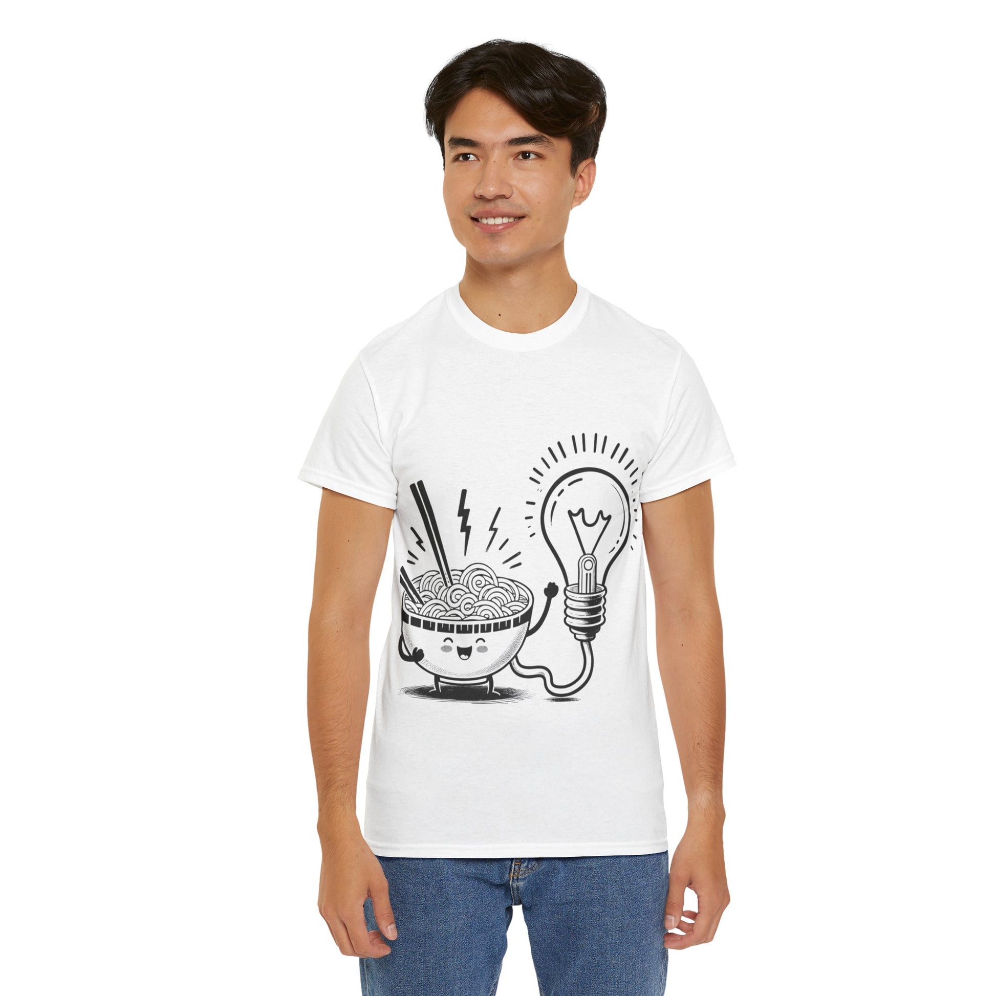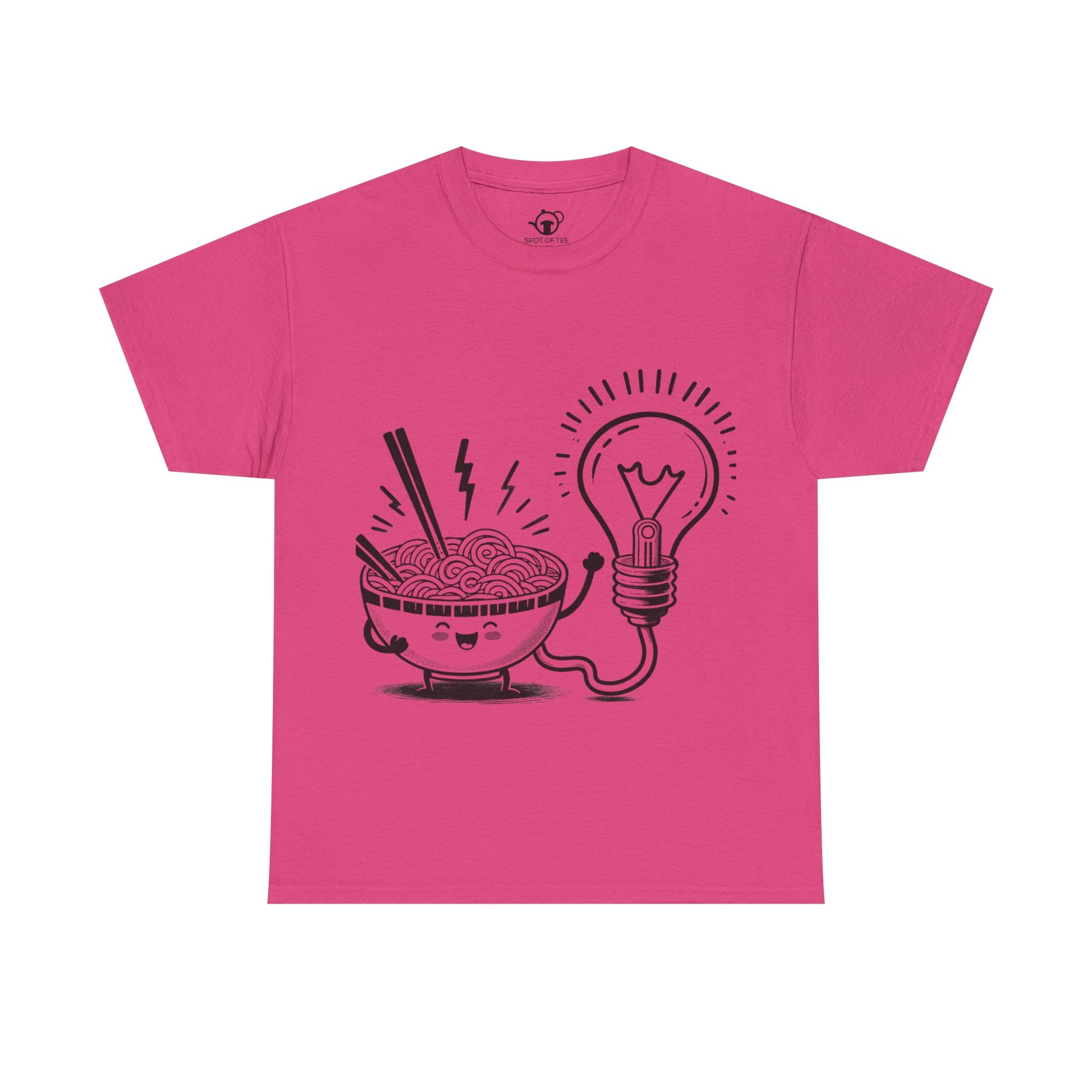 A unisex heavy cotton tee featuring a design that shows how one is powered...by Ramen! Perfect for those who relate to the message or enjoy a quirky, humorous touch to their wardrobe. Ideal for casual wear and can be paired with jeans or shorts. Relevant for occasions like birthdays, holidays, or as a fun gift for someone with a sense of humor.